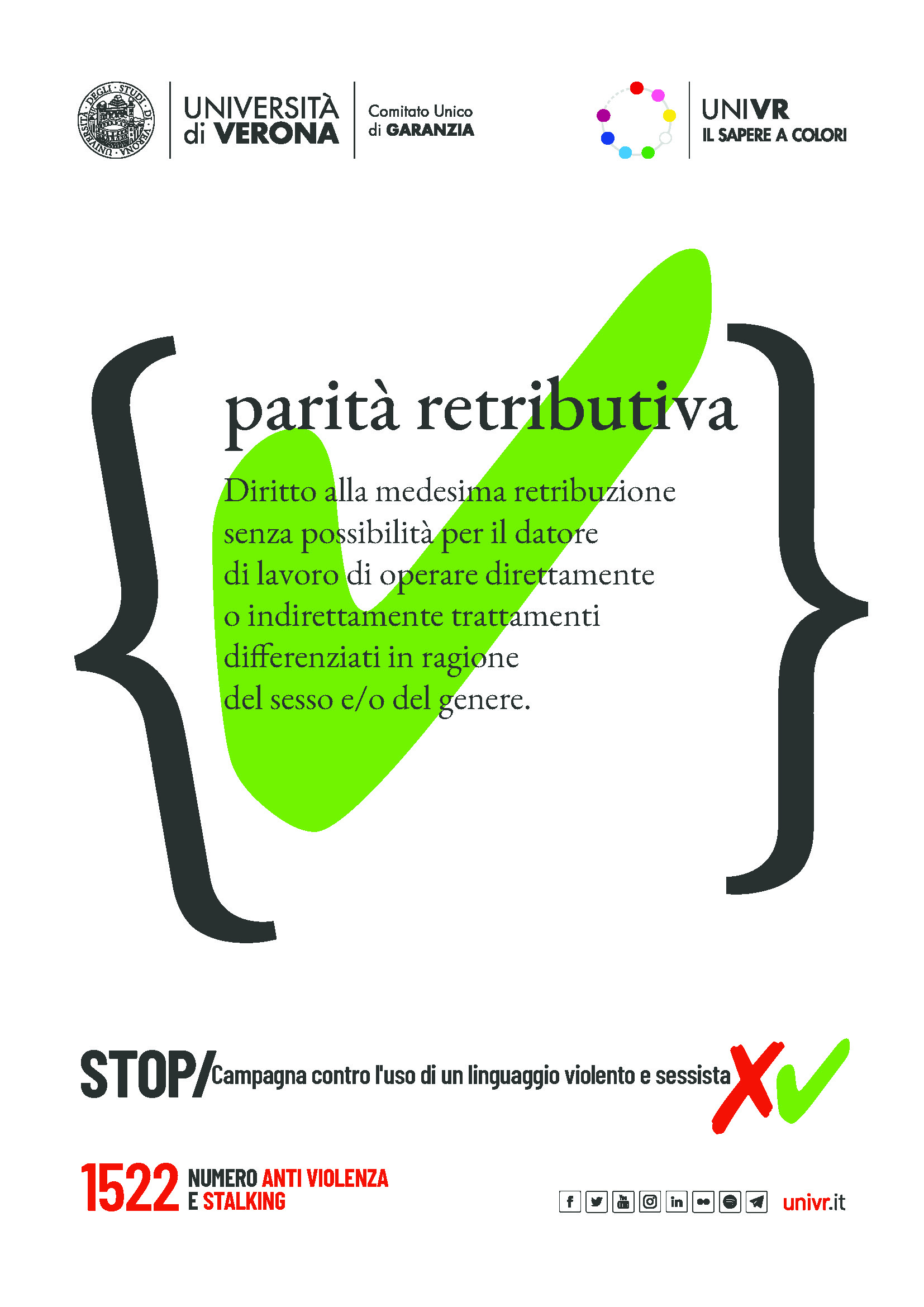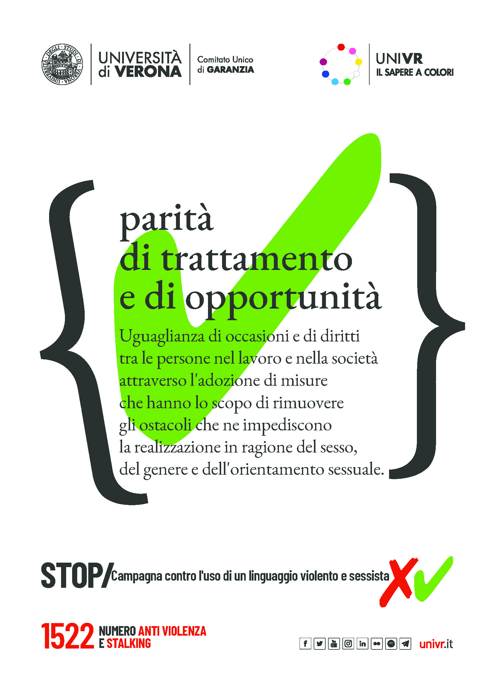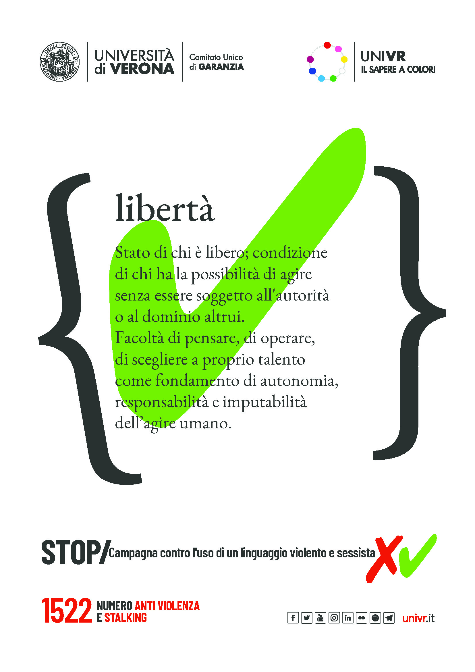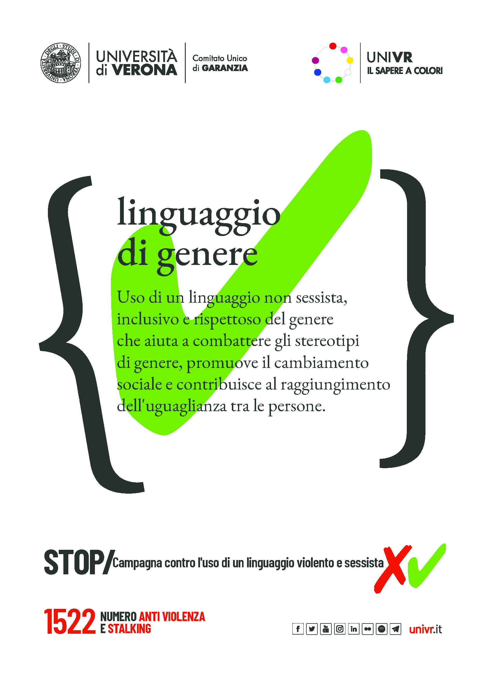 Parte proprio dalle parole la mostra itinerante “STOP/ Campagna contro l’uso di un linguaggio violento e sessista”, promossa dal Cug, il Comitato unico di garanzia dell’ateneo di Verona, in occasione della Giornata internazionale per l’eliminazione della violenza contro le donne, per sensibilizzare sull’uso di un linguaggio corretto e rispettoso. Nei pennelli in mostra sono raccontati, attraverso le parole, gli atteggiamenti da condannare, come il bullismo, la molestia sessuale, la violenza di genere, e quelli da promuovere, come il linguaggio di genere (v. Linee guida), la body positivity, la parità retributiva.