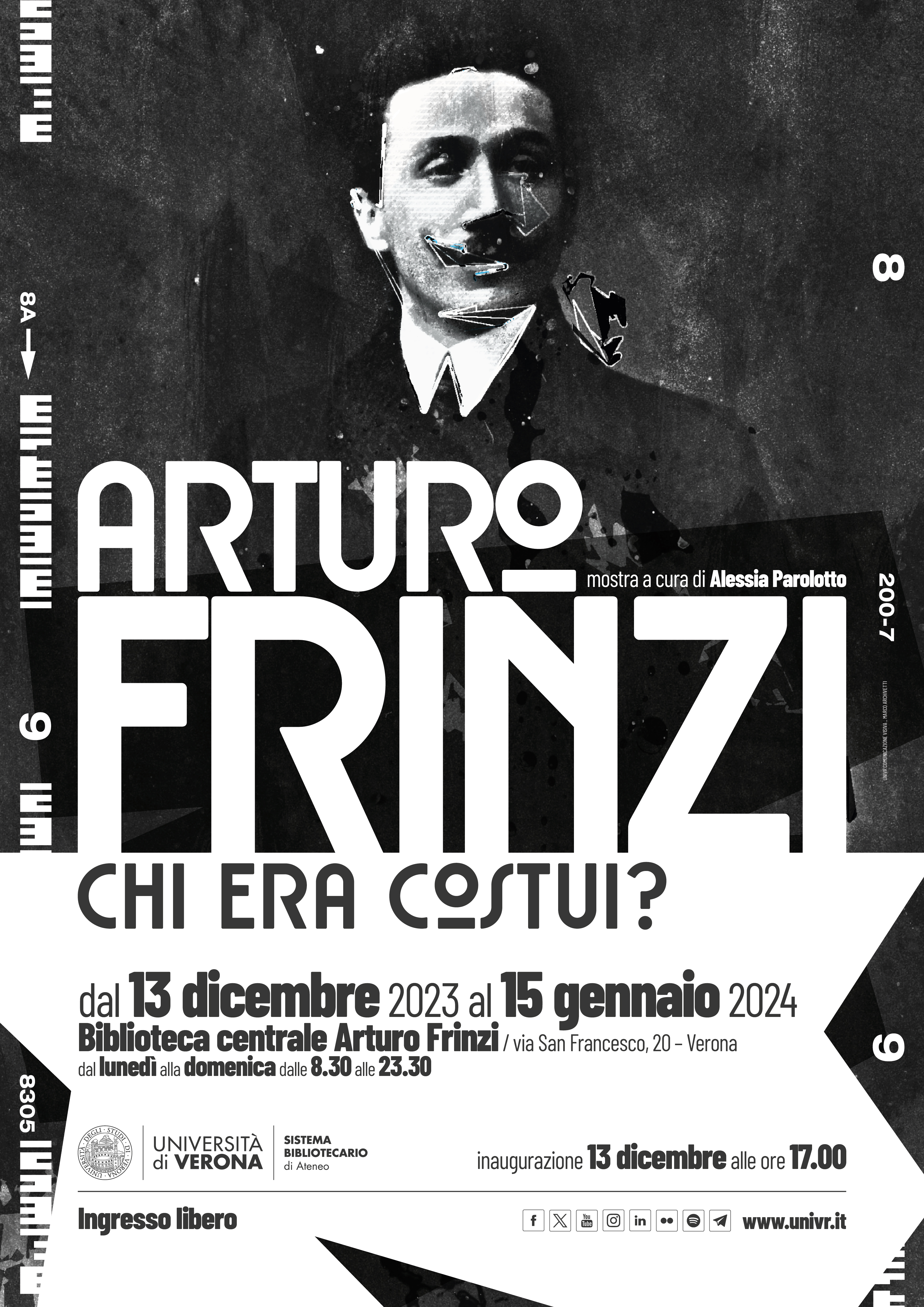 - La mostra si propone di far conoscere la figura di Arturo Frinzi cui è intitolata la biblioteca centrale del polo umanistico, economico e giuridico del Sistema Bibliotecario di Ateneo