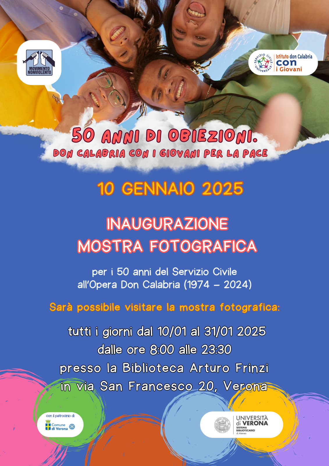 dal 10 gennaio 2025 al 31 gennaio 2025L’8 giugno del 1974 don Antonio Mazzi, sacerdote dell’istituto don Calabria, sottoscriveva la Convenzione col Ministero della Difesa per l’accoglienza dei primi obiettori di coscienza alla leva militare, sperimentando di fatto l’attuale Servizio Civile Universale.